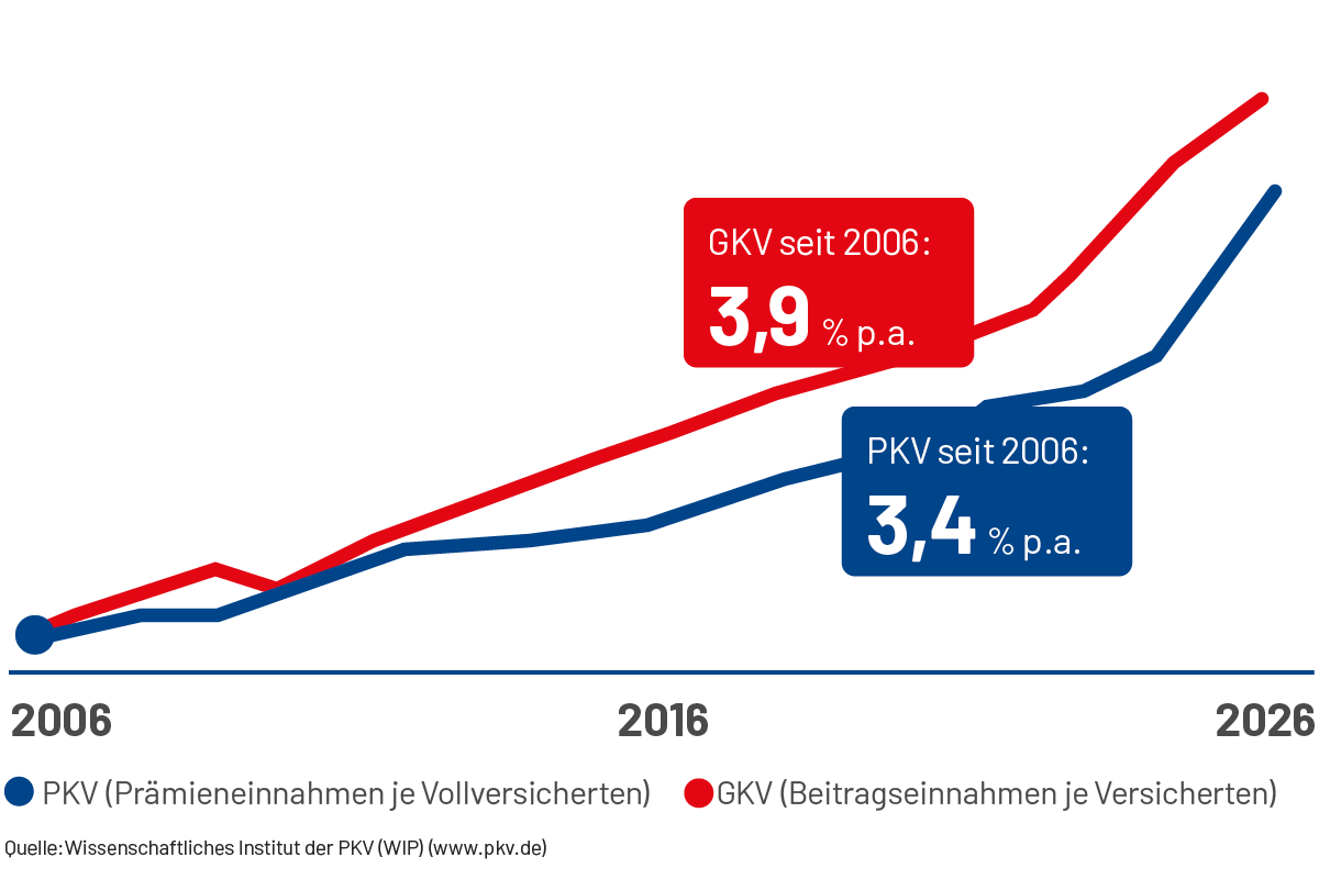 Beitragsentwicklung der GKV und PKV im Vergleich